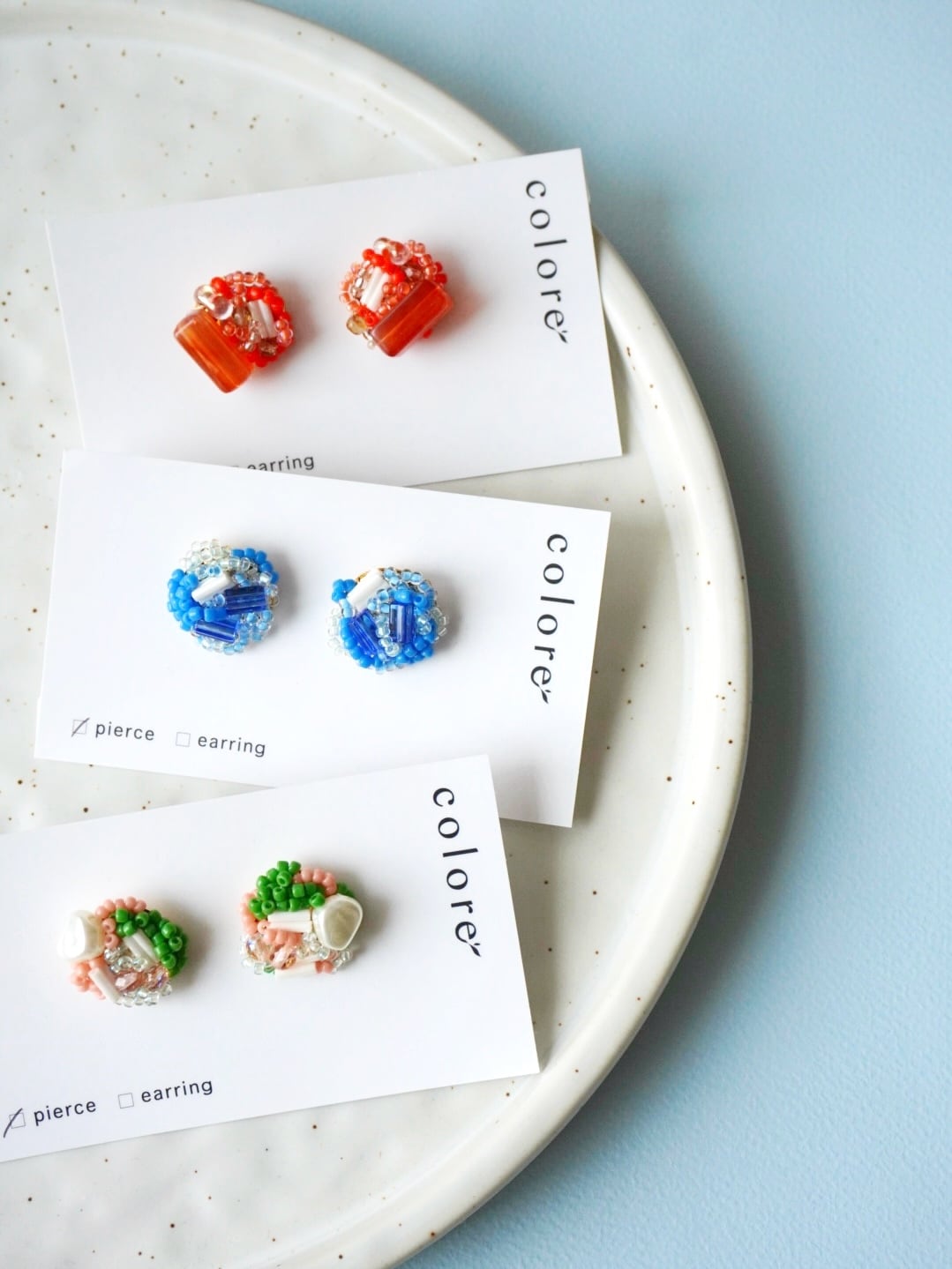 きらきらと輝くビーズピアス。