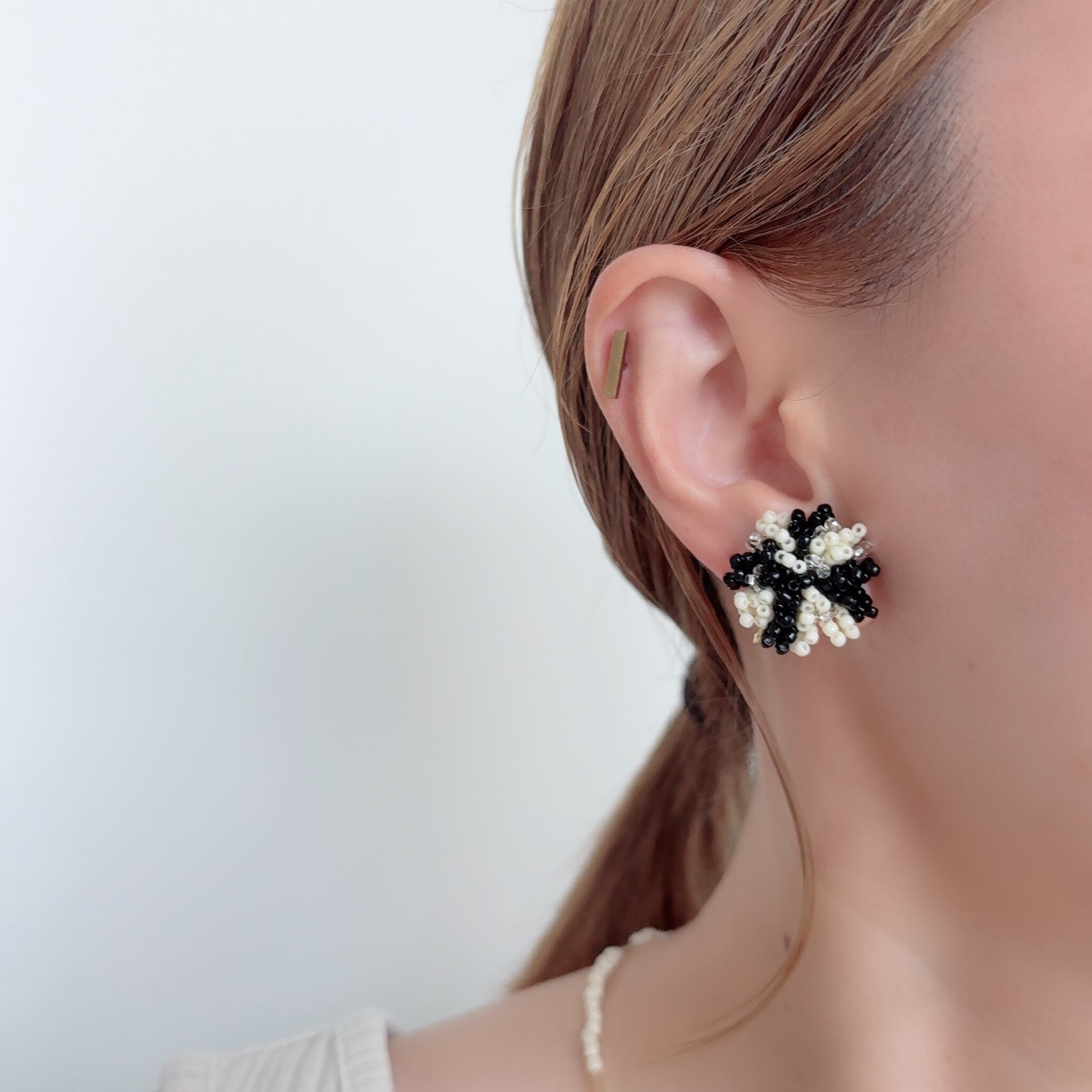 ビーズアクセサリー / ハンドメイドアクセサリー / ピアス / イヤリング / 大ぶりピアス / 個性派アクセサリー / カラフルアクセサリー / 上品アクセサリー / プレゼント / 誕生日プレゼント / クリスマスギフト / 友達ギフト / 黒 / モノトーン / ブラック / ホワイト / 一粒ピアス / 大粒ピアス /華やかアクセサリー/成人式/和装