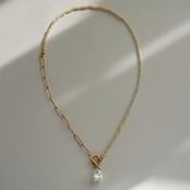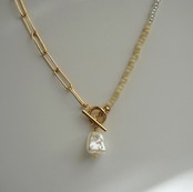 留め具部分にはバロックパールをあしらい、さりげないアクセントに。