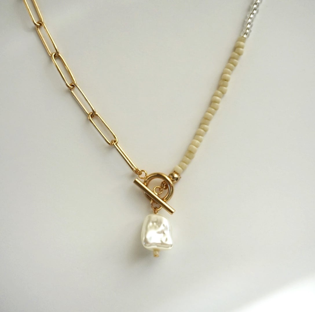 チェーン×ビーズネックレス|バロックパール|ゴールド×アイボリー