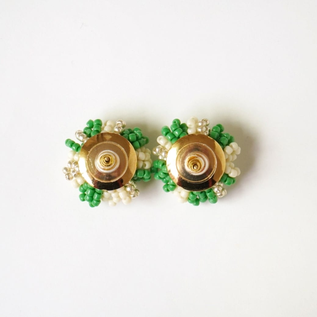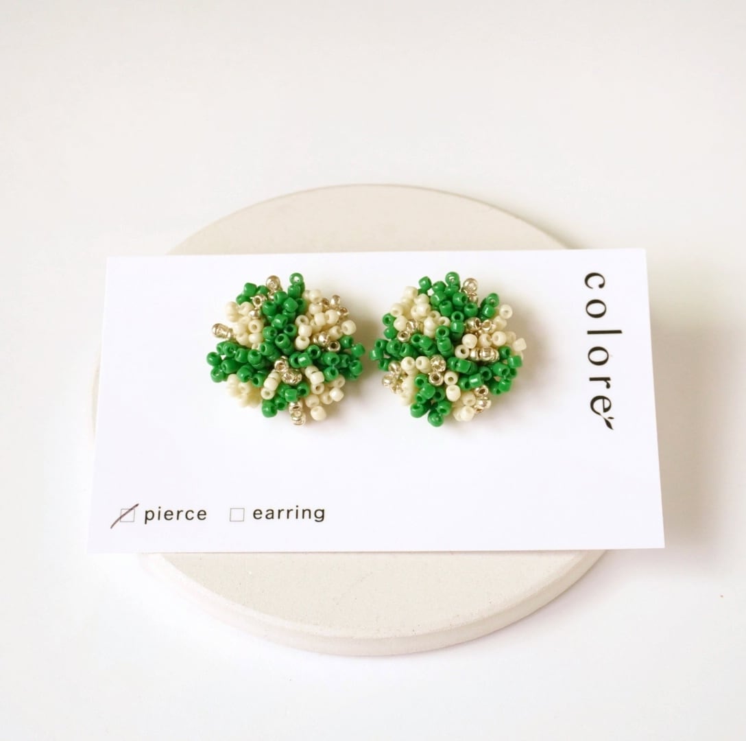 ビーズアクセサリー / ハンドメイドアクセサリー / ピアス / イヤリング / 大ぶりピアス / 個性派アクセサリー / カラフルアクセサリー / 上品アクセサリー / プレゼント / 誕生日プレゼント / クリスマスギフト / 友達ギフト / グリーン / ホワイト / 緑 / 一粒ピアス / 大粒ピアス /華やかアクセサリー