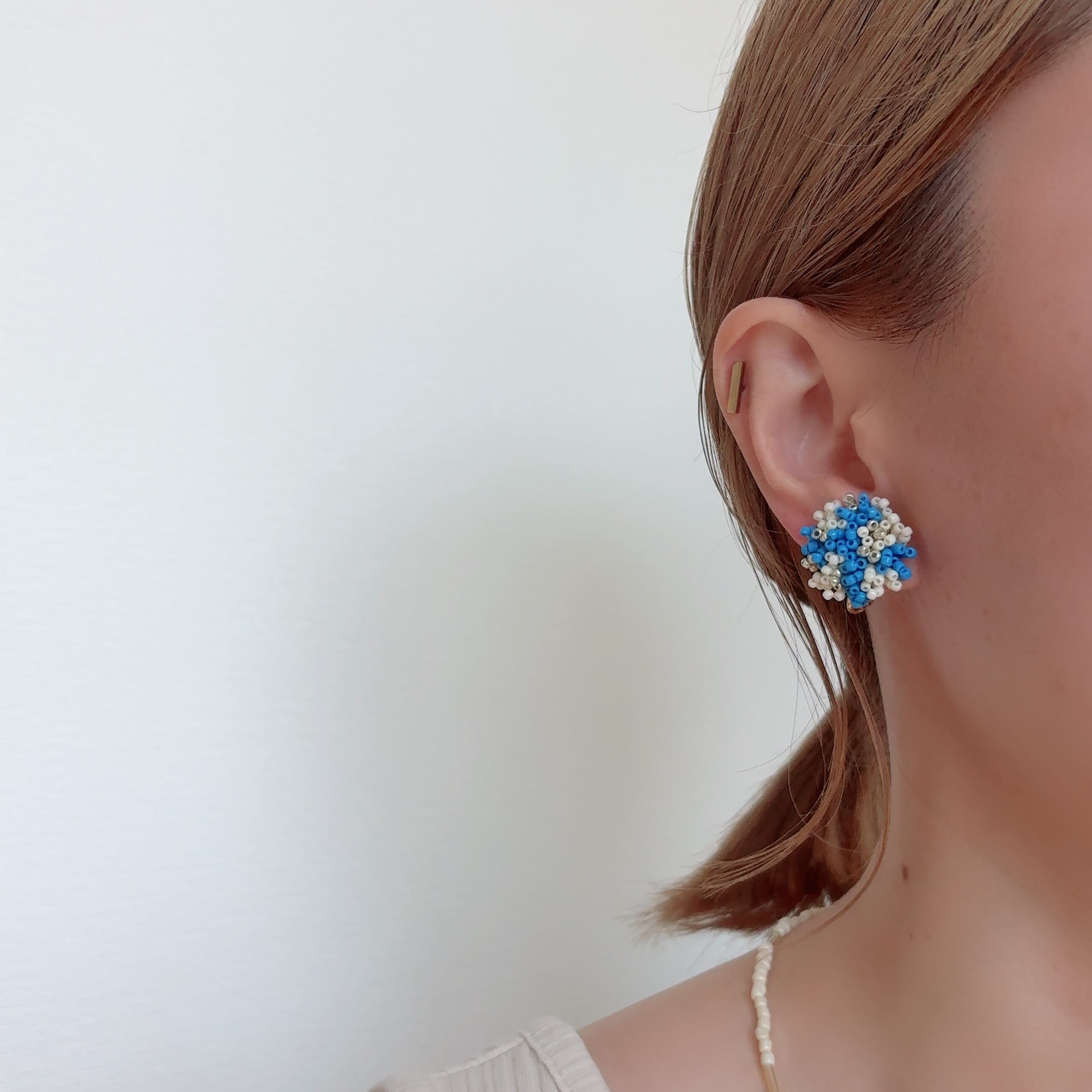 ビーズアクセサリー / ハンドメイドアクセサリー / ピアス / イヤリング / 大ぶりピアス / 個性派アクセサリー / カラフルアクセサリー / 上品アクセサリー / プレゼント / 誕生日プレゼント / クリスマスギフト / 友達ギフト / 一粒ピアス / 大粒ピアス /華やかアクセサリー / ブルー /青 / 水色 / ホワイト